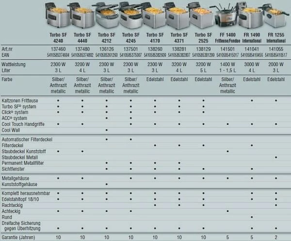 Fritel Fritteuse Turbo SF 4070, 3 Liter und 2000 Watt. Die Fritel Fritteuse Turbo SF 4070 verfügt über das TURBO SF System®, d.h. bis zu 50% schneller frittieren und wesentlich weniger fette Pommes Frites. Für die Zubereitung von Portionen für 2 bis 4 Personen.