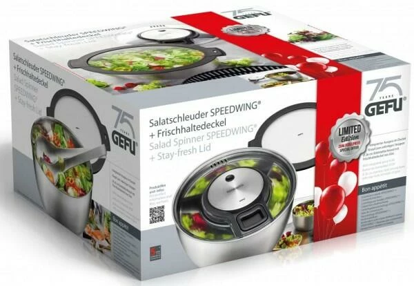 GEFU Salatschleuder SPEEDWING mit Frischhaltedeckel. Formschöne Salatschleuder mit integrierter Schüssel zum stilvollen Servieren der Salatspeisen und praktischem Frischhhaltedeckel zum sicheren Transportieren.
