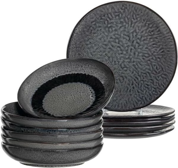 Leonardo Tellerset MATERA 12-teilig anthrazit Keramik.