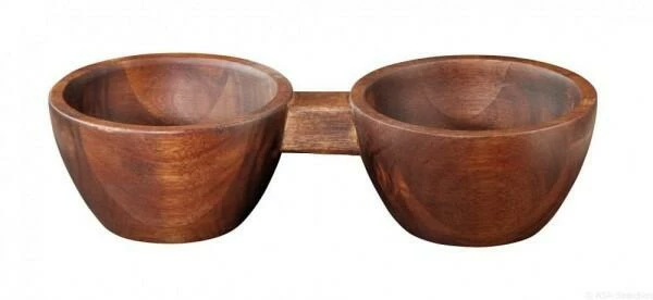 ASA 2er Snackschale aus Akazie. Zwei kleine Snackschalen aus hochwertigem Akazienholz, verbunden durch einen Holzstieg.