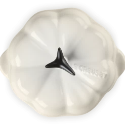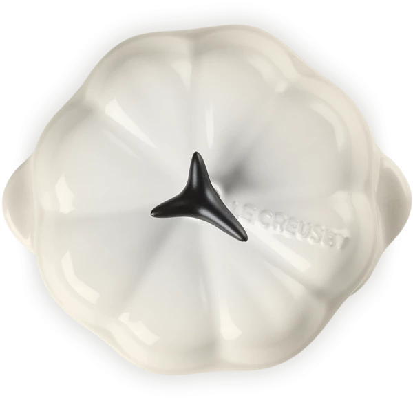 Le Creuset Kürbisförmchen mit Deckel in meringue. Vielfältig einsetzbares Serviertöpfchen in glänzender Farbe und Kürbisform.