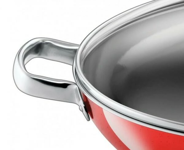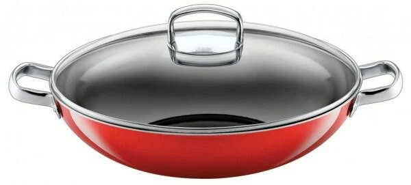 Wok Energy Red mit Glasdeckel. Dieser Wok besticht nicht nur durch seine exzellenten Gar- und Brateigenschaften, sondern durch seine leidenschaftliche Farbe zaubern Sie Leben in die Küche. Spaß und Genuss sind dabei garantiert.