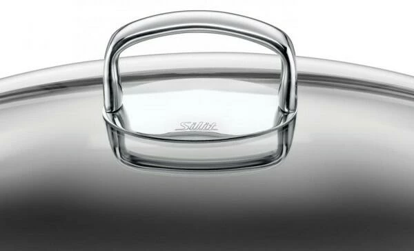- Hitzebeständiger Glasdeckel mit Edelstahleinfassung zum wasser- und energiesparenden Sichtkochen.