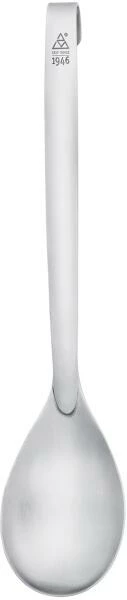 Servierlöffel „1946“. Zu dieser Serie gehören Küchenhelfer für jeden Tag, sämtlich neu durchdacht und einzigartig in ihrer Handhabung. Aus gebürstetem 18/10 Edelstahl und mit einer massiven Materialstärke sind sie unverwüstlich und bestreiten den rauen Gastronomiealltag ebenso souverän wie sie am Buffet und im Haushalt durch Ihre Formschönheit beeindrucken. Alle Teile der Serie wurden auf den Prüfstand gestellt und in ihrer Funktion optimiert. SuppenSaucenkelle gießen tropffrei, Wender und Löffel sind stark und ergonomisch und derSchaumlöffel sorgt durch große, eckige Löcher für perfektes und verstopffreies Ablaufen von Flüssigkeiten. Eine weitere Besonderheit sind die beiden flexiblen Wender aus Edelstahl und Nylon. Ihre Laffe ist sehr dünn, aber dennoch stabil und hochflexibel. So gleiten sie leicht unter empfindliche Speisen wie Spiegelei, Jakobsmuscheln oder feines Gebäck und heben und wenden ohne Bruchgefahr. „1946“ vereint triangles Kernwerte Qualität, Funktionalität und Nachhaltigkeit in Perfektion. Und so wäre auch Firmengründer Erwin Hill, der 1946 den Grundstein zu triangle legte, stolz auf diese Serie gewesen und hat so zu ihrem Namen inspiriert. Rostfrei und spülmaschinengeeignet.