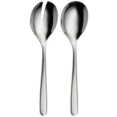 WMF Salatbesteck Sinus. Durchmischen, aufgreifen, servieren: Keine Frage, zu einem frischen Salat gehört ein Salatbesteck. Es ist stets zweiteilig, wobei seine flachen, äußerst großzügig gestalteten Laffen die leichte Aufnahme des Salats ermöglichen und zwar so, dass überschüssiges Dressing vor dem Servieren leicht abtropfen kann. Die langen Stiele des Bestecks sorgen für bequemes Hantieren und verhindern zugleich, dass es in die Salatschlüssel rutscht.abtropfen kann. Die langen Stiele des Bestecks sorgen für bequemes Hantieren und verhindern zugleich, dass es in die Salatschlüssel rutscht.