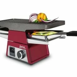 - Material: Grillplatte aus Aluminium-Guss antihaftbeschichtet. Mittelteile aus Aluminium-Guss pulverbeschichtet. Pfannenablage und Unterteil aus Edelstahl, satiniert