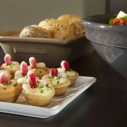 Die Buffetschüsseln von Emile Henry Urban Buffet liefern eine gleichmäßige Wärmeverteilung, sodass die Speisen auch an der Oberfläche appetitlich und frisch bleiben. Die robusten Schüsseln eignen sich ideal zum Anrichten von Vorspeisen, Salaten und Desserts.