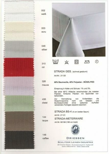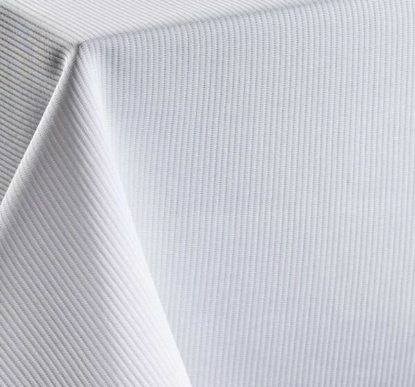 Tischdecke Strada weiß. Aus 60% Baumwolle und 40% Polyester. Besonders pflegeleicht und bügelfrei.