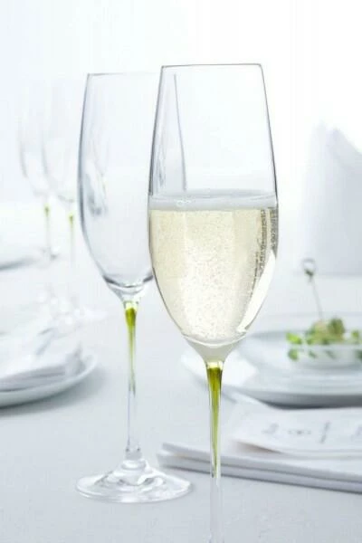 Die Reihe La Perla der Marke Leonardo ist eine Weltneuheit. Das klassische Design der Sektgläser wird durch eine bunte Morani-Glasperle ergänzt. Der bunte Blickfang läuft wie ein Tropen vom Boden des Kelchs in den Stiel.